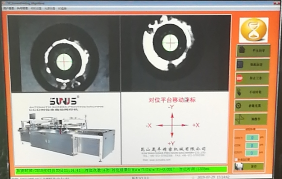 印刷台板在CCD拍照后进行自动对位,形成一个闭环系统,完成自对位应用后通过跑台将产品移栽到网板位置,,保证了印刷系统的精确性。