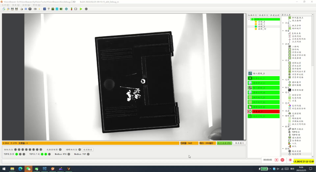 应用描述:流水线不停止,传感器触发拍照,NG产品由气缸剔出流水线1颗全局相机