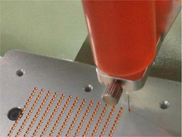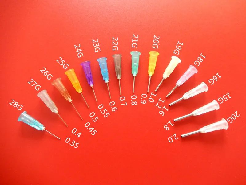在工作实际中,针头内径大小应为点胶胶点直径的1/2左右,点胶过程中,应根据产品大小来选取点胶针头。大小相差悬殊的产品要选取不同针头,这样既可以保证胶点质量,又可以提高生产效率。