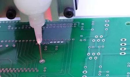 根据工作经验,胶点直径的大小应为产品间距的一半。这样就可以保证有充足的胶水来粘结组件又避免胶水过多。点胶量多少由时间长短来决定,实际中应根据生产情况(室温、胶水的粘性等)选择点胶时间。