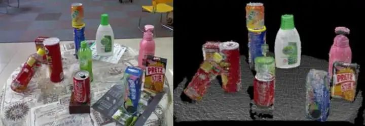 但是,只要有了这个初步估计的物体位姿,我们就可以直接采用 ICP 算法(Iterative closest point)匹配物体模型与 3D 点云,从而得到物体在相机坐标系下的精确位姿。