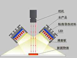 采用高亮度大功率LED,通过特 殊的散热设计,发光强度高,均匀性好, 适合无反光物体检测,可配合同轴线光 源组合检测PCB板特征。