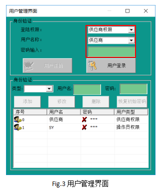 ② 用户管理界面,输入供应商权限密码:“310525”,点击“用户登陆”,进入软件管理权。