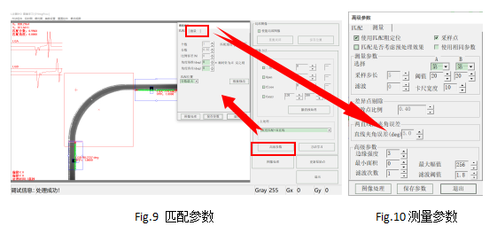 Step3:调整高级参数。点击“高级参数”,进入高级参数界面,调整参数如下图9与图10。可根据实际情况修改“分数”、“角度容差”、“滤波次数”、“有效点比例”、“直线夹角误差”等参数。