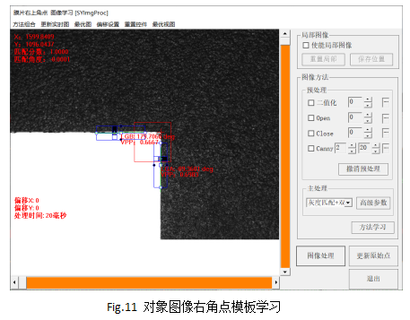 Step4:依次学习对象图像右上角点模板、左下角点模板、右下角点模板,方法与前面相同