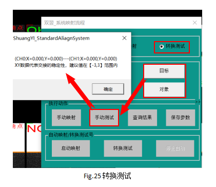 6) 勾选转换测试,再做第三次交接,步骤同上,抓点OK后点击手动测试。CH数据需要在【-3~3】范围内才算映射合格。代表产品交接稳定,否则需要检查抓点问题和机构交接的稳定性问题。