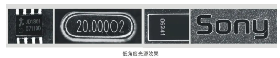 低角度光源照射,图像背景为黑色,即暗场照明,可以显现物体边缘倒角等45~60°的坡度信息,表面比较杂乱的碰伤、划伤、雕刻特征也可以显示出来。