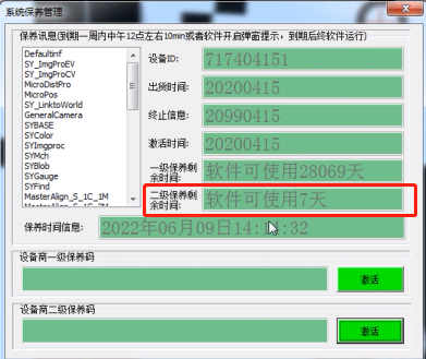 2. 在软件界面上,您会注意到二级保养的剩余时间已更新为您在申请激活码时设定的时间。