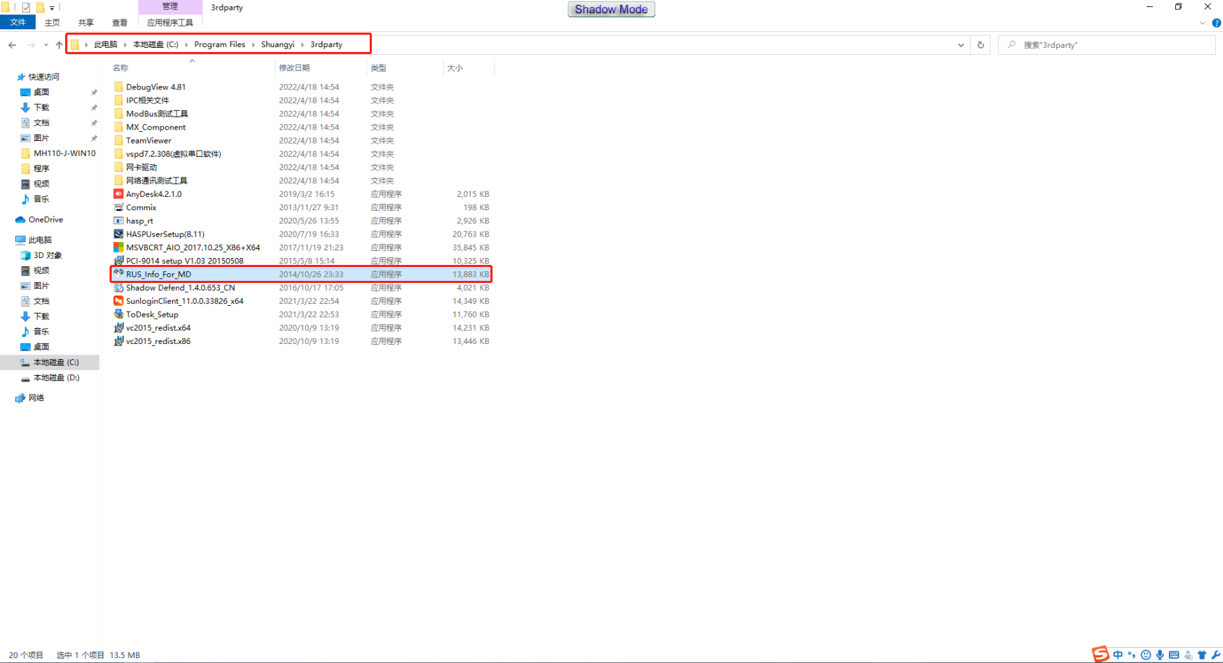 2.根据路径“C:\Program Files\Shuangyi\3rdparty”找到"RUS_Info_For_MD.exe"程序
