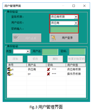 ② 用户管理界面,输入供应商权限密码:“310525”,点击“用户登陆”,进入软件管理权。