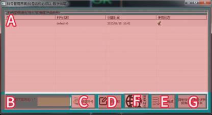 料号管理界面主要分为七个区域,每个区域都有特定的功能,以下是对这些区域的详细介绍: