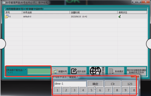 料号名字输入框,点击会弹出桌面小键盘进行输入,也可用键盘直接输入