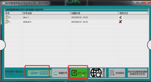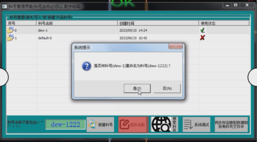 修改名称:在料号名称框中填入需要修改的料号名称,点击修改名称,系统将当前选中的料号名称修改为新填入的;