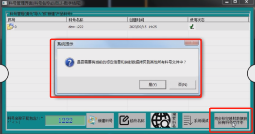 点击同步标定映射数据到所有料号,弹出提示框点击是,将当前标定信息和映射数据拷贝到其他所有料号文件中。