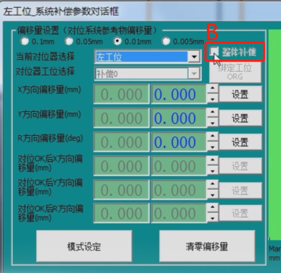 C区块:当前对位器选择:多个对位器共用一个补偿界