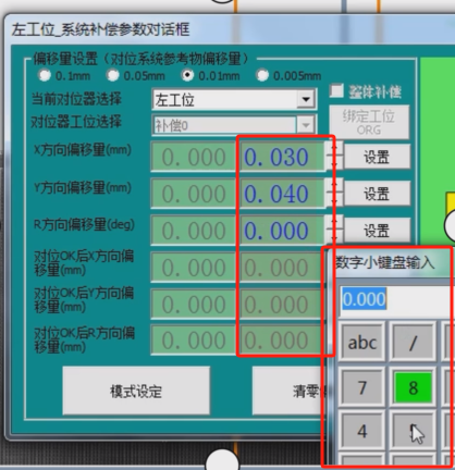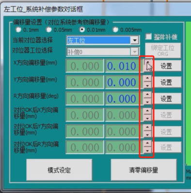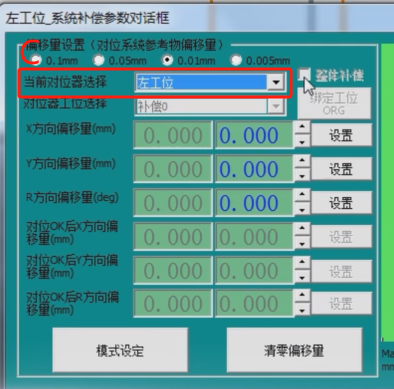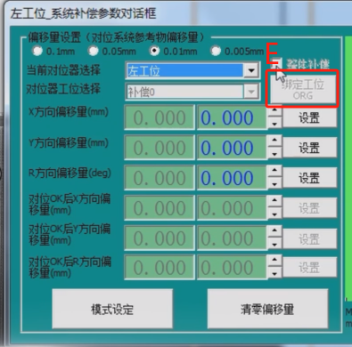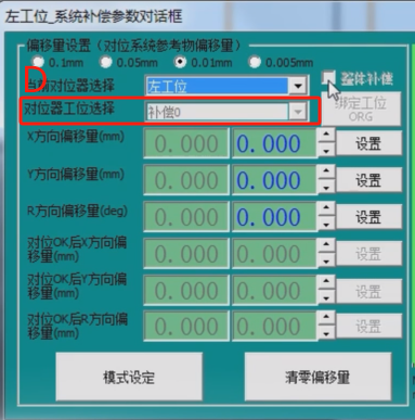 D区块:对位器工位选择:同一个对位器最多可以支持 5 组补偿值