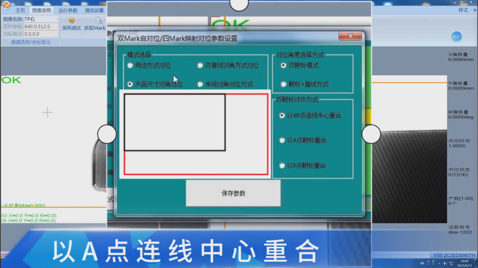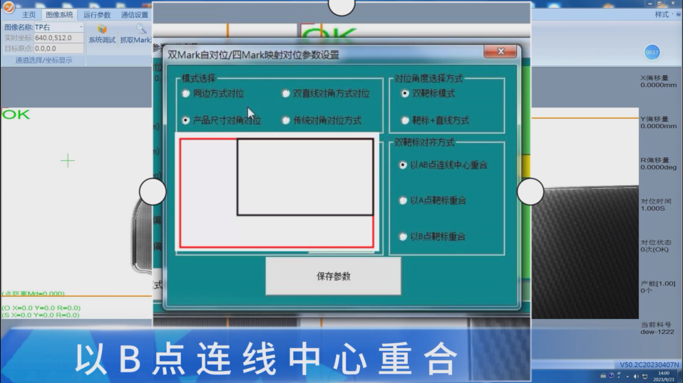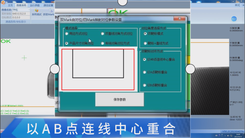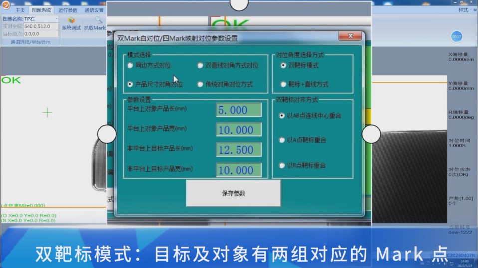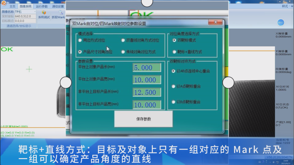 靶标+直线方式:目标及对象上只有一组对应的MARK点及一组可以确定产品角度的直线