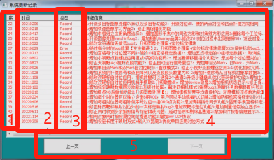 系统更新记录界面大致可分为5块区域