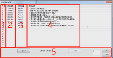区域5:点击上一页/下一页按钮,可以切换页面查看更前或者更后面的更新记录。