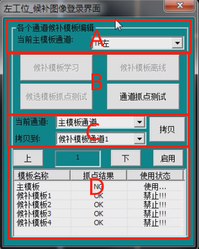 区域D - 候补模板状态:这个区域显示了候补模板的抓点结果以及使用状态。候补模板可以根据需要启用或禁用。候补模板4则专门用于标定或建立映射关系,具有特殊用途。
