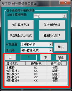 伟德国际唯一官网入口MasterAlign软件的图像系统中,候补模板登录功能是一个重要的组成部分,它在保证稳定性和准确性方面发挥着关键作用。其包含启用/禁止候补模板,候补模板登录,抓点测试等。目前系统中单个图像通道有主模板+四个候补模板的方式;其中三个候补模板用于当主模板抓点失败后,自动根据启用情况,调用候补模板1,2,3 进行靶标获取,如果候补模板 1,2,3 同时启用了,系统首先会调用候补模板1,如果1抓靶失败的话,才会启用2,依次类推。备注:候补模板4专门用来标定或者建立映射关系。