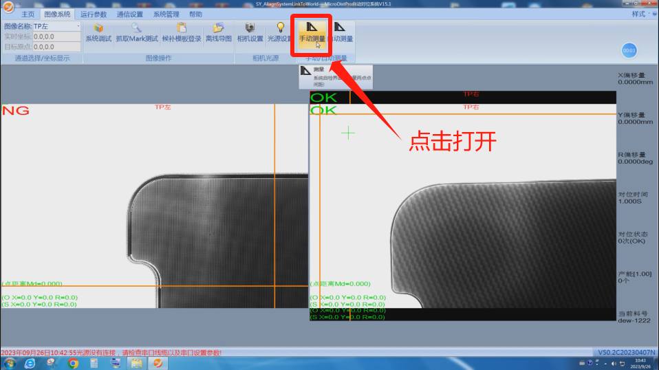 点击手动测量,弹出操作界面