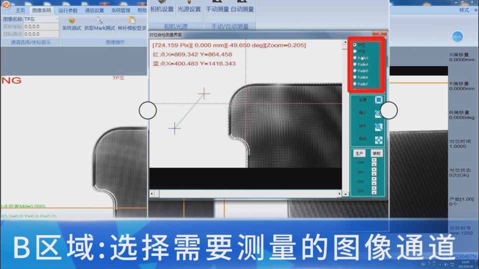 根据实际需要在B区域可以自行切换需要测量的图像通道,点击通道名称即可完成图像通道切换。