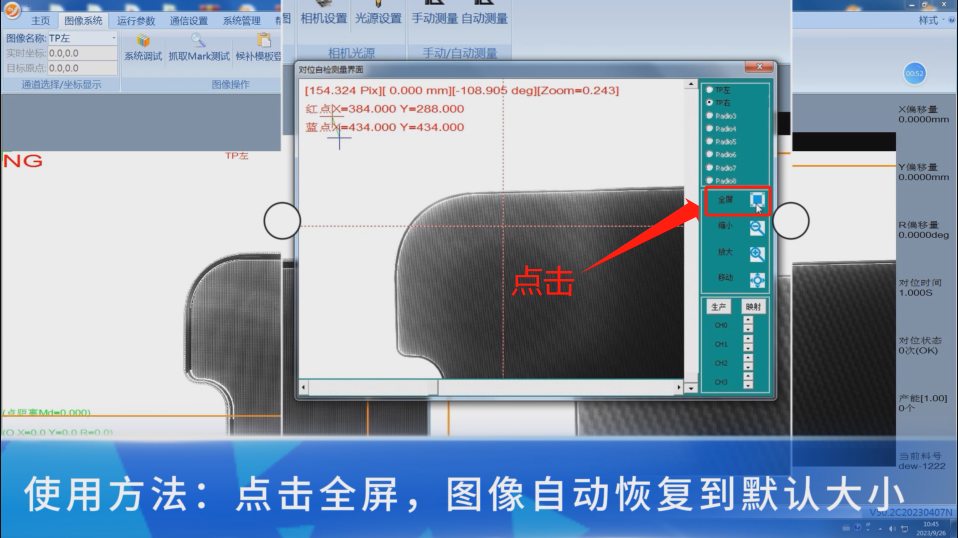 C-1:点击全屏,图像显示自动恢复到默认大小。