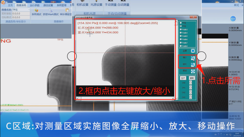 C-2:放大缩小功能,点击一下所需要的功能,然后在图像框内点击鼠标左键,既可以完成放大/缩小,点击一下放大或者缩小一下。
