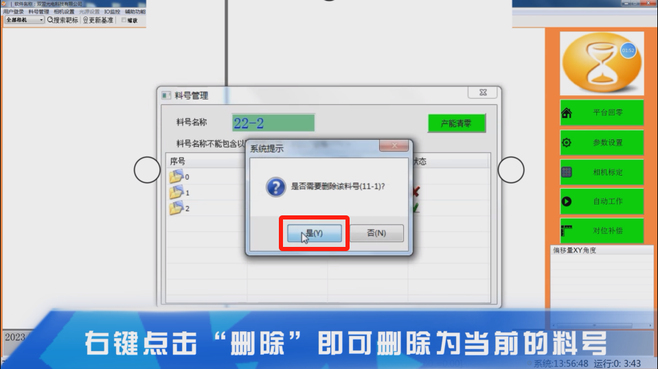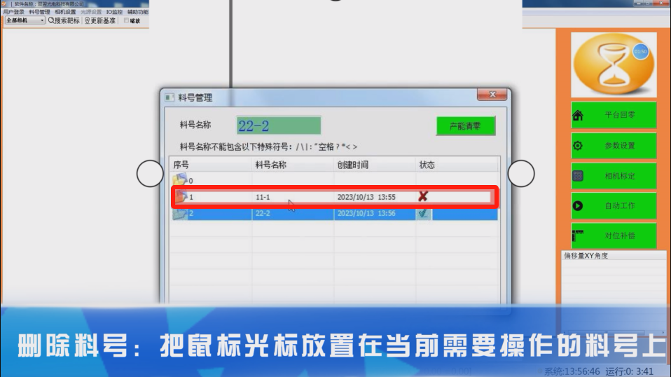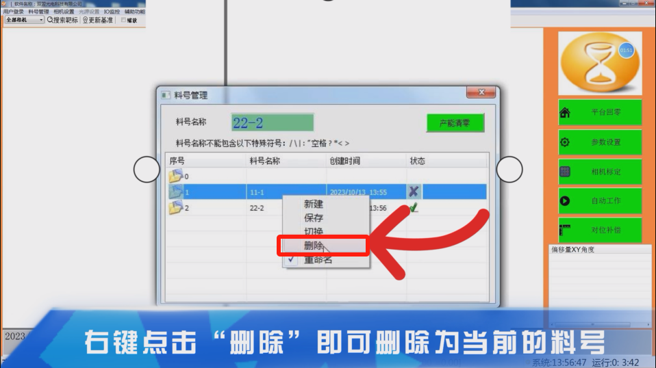 删除料号:把鼠标光标放置在当前需要操作的料号上