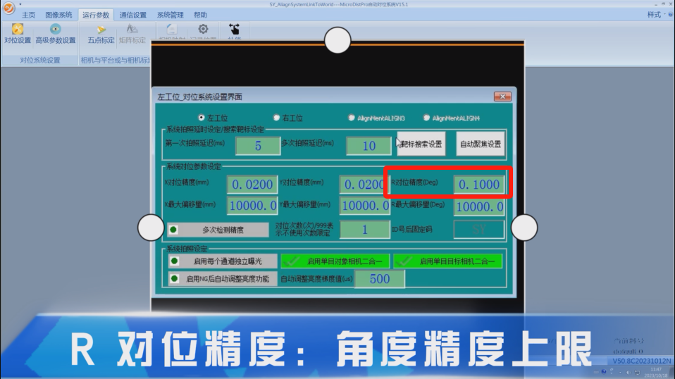 R标定步距:标定过程中对位平台旋转方向移动的角度;