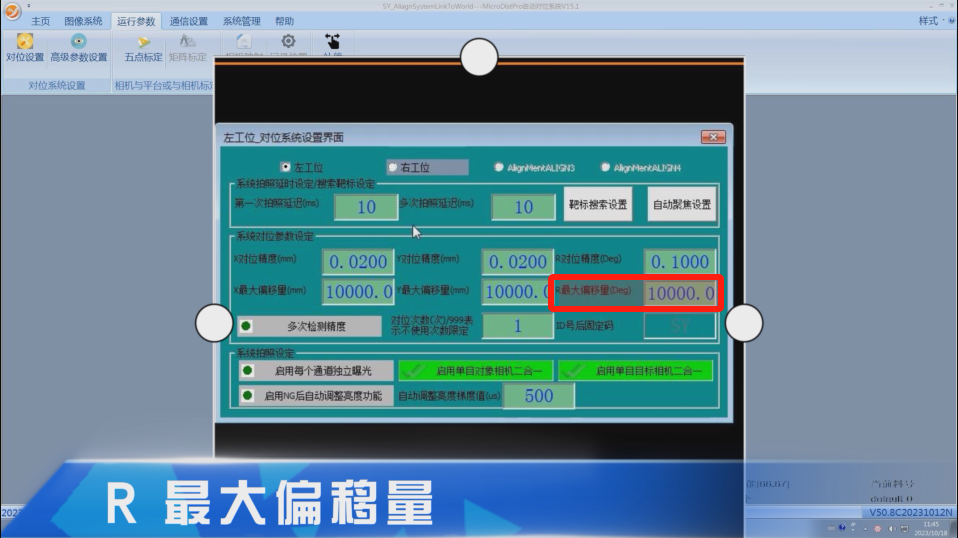 R 最大偏移量:对位过程中对位平台旋转方向最大可以移动的角度。
