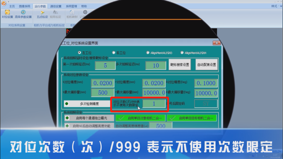 MasterAlign-运行参数-对位设置-对位次数(次)/999 表示不使用次数限定