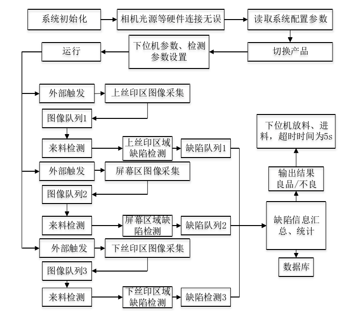 基于机器视觉手机玻璃盖板缺陷检测系统运作流程: