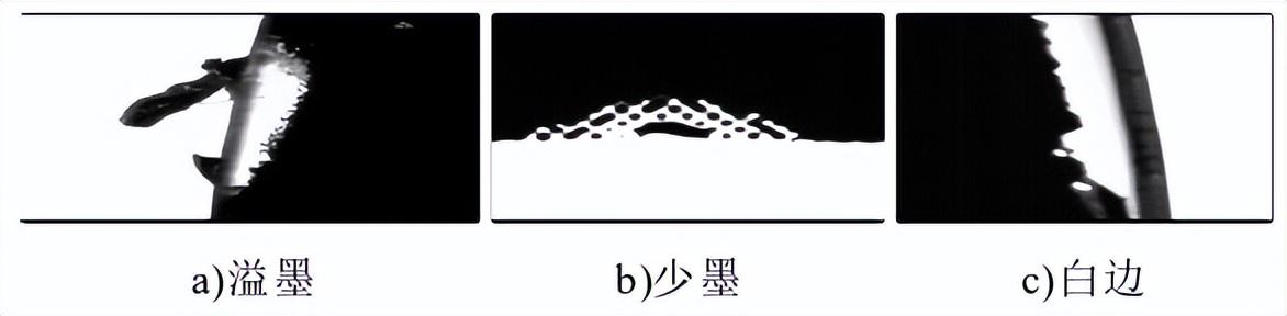 手机玻璃盖板在丝印时,丝印对位偏差、油墨压力不稳时出现溢墨、少墨、白边等缺陷,称为丝印不良。