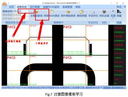 ? Step1:如图7所示,通过“通道名称”处选择我们要进行模板学习的通道:“OCA左”,然后点击“主模板登录”进行图像的模板学习。