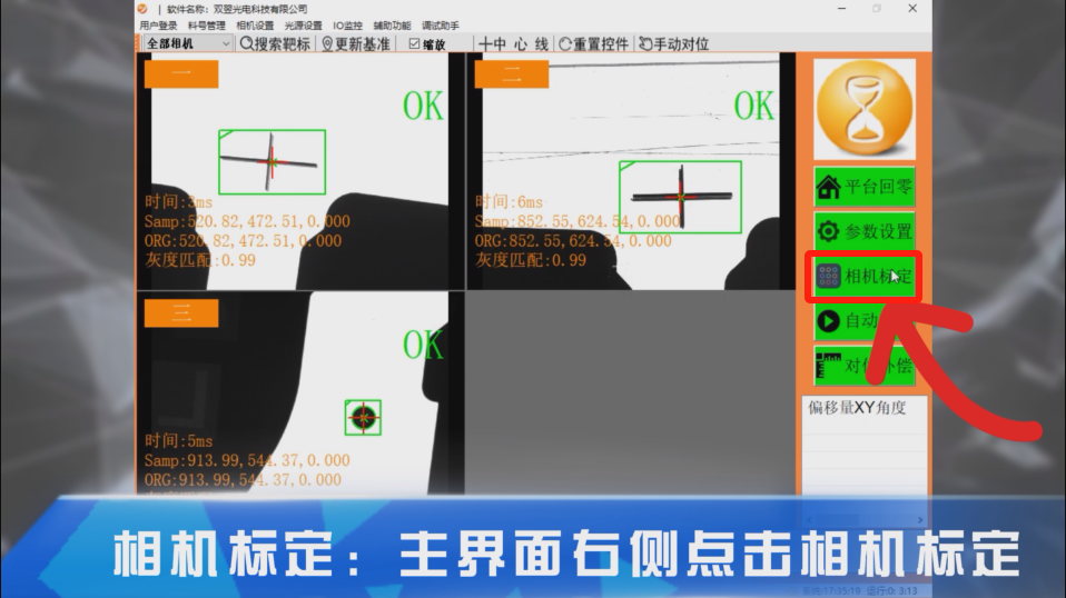 相机标定:一键启动系统所有相机同步标定;同时系统配置“标定同时 保存基准点”时