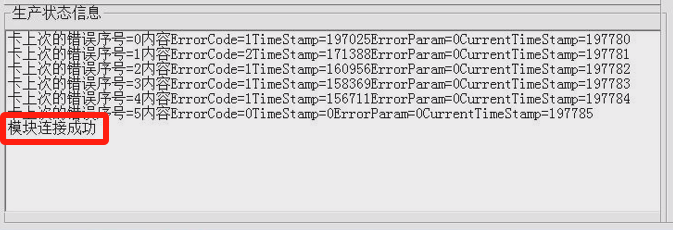 等待几秒后在生产状态信息栏处显示“模块连接成功”