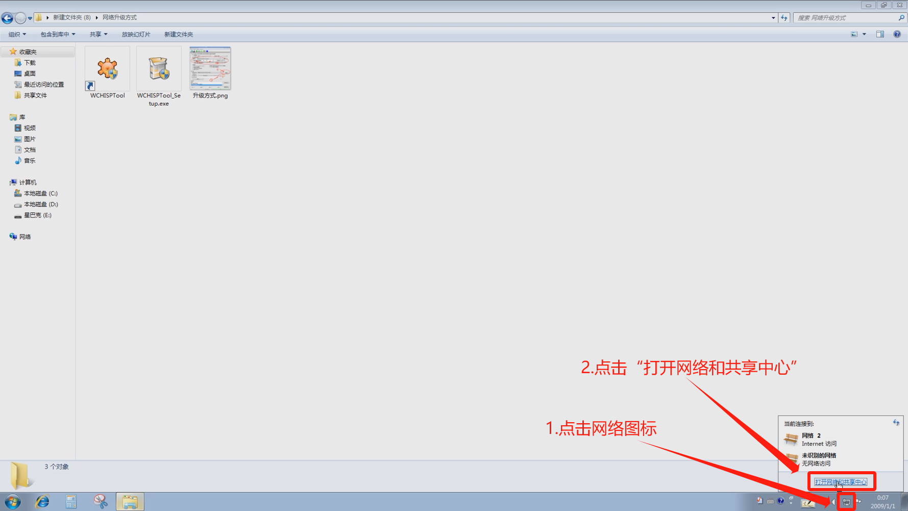 下一步检查网络适配器,确认运动控制器连接的是哪一个网口。点击网络图标,再点击“打开网络和共享中心”