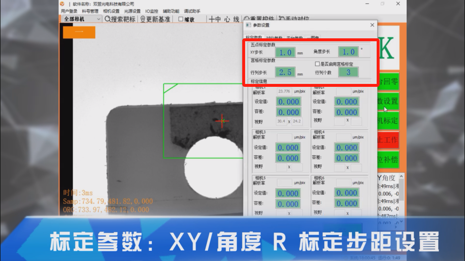 标定参数:XY/角度 R 标定步距设置,即系统五点标定步距设置,大致原理分析如下图所示: