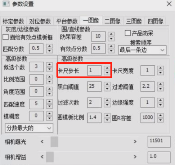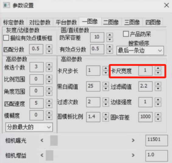 卡尺宽度:形状拟合的像素采样宽度值;(参考设置值:10)