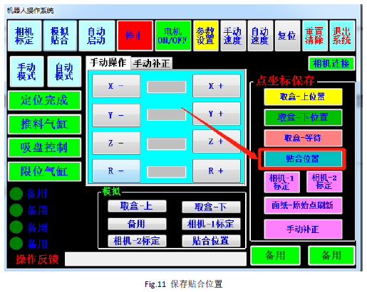 将机械手移动到贴合的位置,将此位置保存为贴合位置。