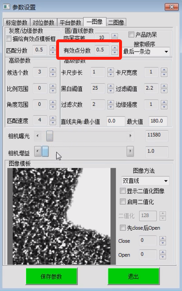 有效点比例:未被剔出的点即为有效点,该参数表示有效点占所有边缘点的比例。该参数能检测出直线边是否有损坏,;(参考设置值:0.5-0.7)