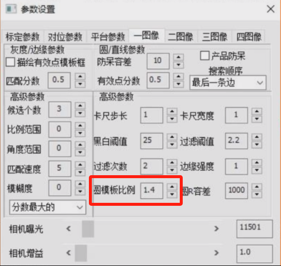 圆模板比例:圆工具的匹配模板大小=圆形的大小*圆模板比例;(参考设置值:1.2)