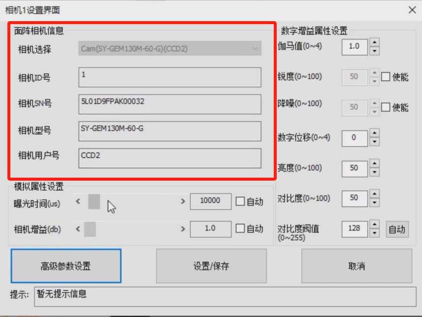 可以看到所选相机的ID号、SN号,以及相机的型号与相机用户号。