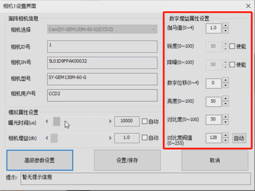 在界面的右侧便是数字增益属性设置,下面依次介绍其功能
