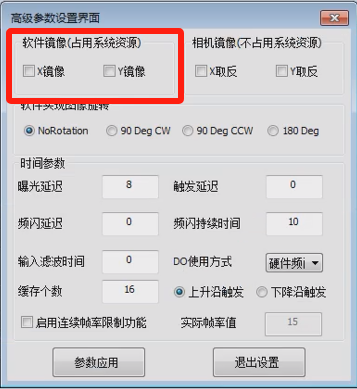 软件镜像:通过软件算法对相机图像镜像,会占用系统资源,不建议选择此方法