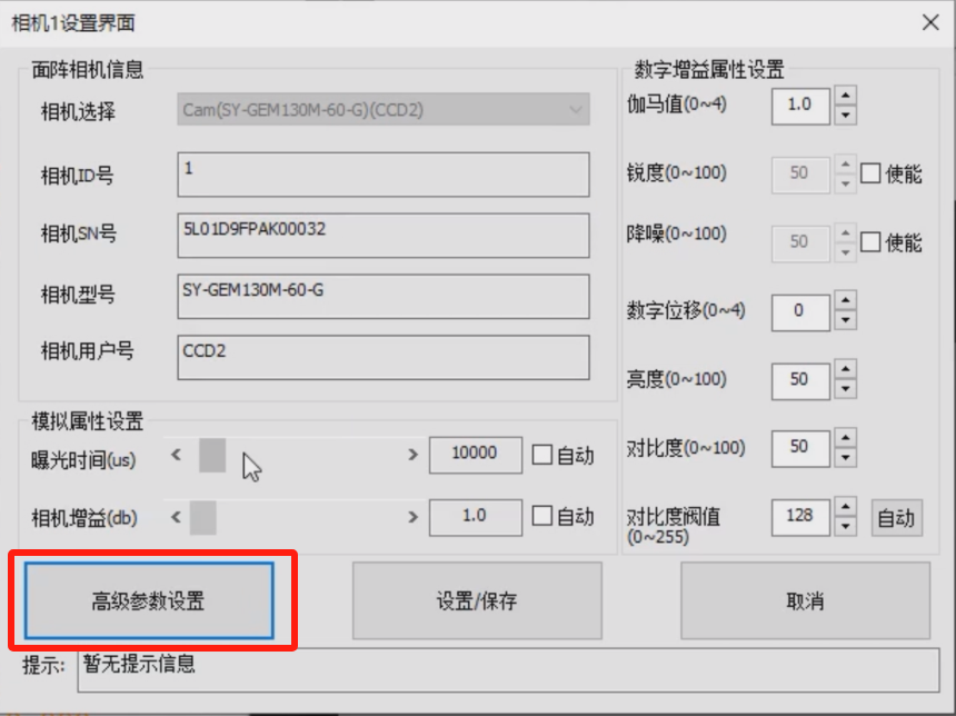 进入到相机设置界面,点击下方高级参数设置,打开高级参数设置界面。