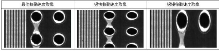 AOI图像采集的最后一个关键步骤是控制系统,光电传感器的FOV(视窗)有限,物体高速运动中准确地抓拍到清晰的图像,软硬件协调动作非常重要,如下图所示,当图像传感器与机台移动速度不匹配时造成图像的拉伸,收缩等变形,所以,载物移动平台XY方向移动与图像采集光电传感器的同步移动影响到数据的准确,要在固定光照,等间距下拍摄一幅清晰的图像,高精度的导轨,电机和运动控制程序是非常必要的。