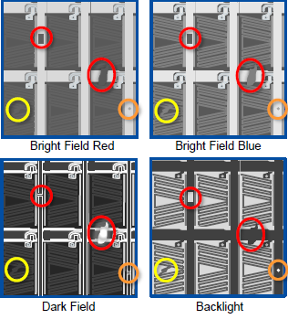 除波长参数外,光源的入射角度也是提高检出的重要参数。根据光源入射角度的不同分为同轴光源,侧光和背光三种,选择某种角度的光源是由光在被检测物体表面散射特性的差异最大化来决定的。同轴光源的灯源排列密度高,亮度高且均匀,能够凸显物体表面不平整,克服表面反光造成的干扰,主要用于检测物体平整光滑表面的碰伤、划伤、裂纹和异物。同轴光基本是红、绿、蓝三色光源,也可以是不同波长光源的任意组合。侧光源与同轴光源的平行照射理念正好相反,低角度光源从很小的角度将光线直接照射到被检测物体上。由于光的方向几乎与物体表面平行,物体表面高度的任何变化都会改变反射光到光电传感器的光路,从而突出变化,适合有一定高度的缺陷物检出。侧光源的角度与高度变化时,有一定高度的被检出物体的强反射面(阳面)和弱反射面(阴面)的角度和反射光强度都会有变化。为检出结果的判定提供了丰富的信息。背光源的原理则是利用被检测物体中不同部分光透过率差异实现检出的方法,硬件上与其他光源的摆放位置不同,光源不与光电传感器同侧,而是置于光电传感器的对面,接受被检测物体透过光的强弱,适合被检测物体中有缺失部分检出。